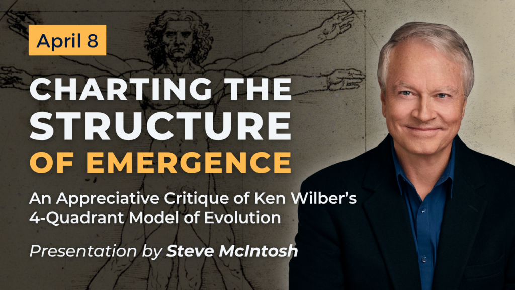 Join us next Wednesday for a presentation by developmental philosopher Steve McIntosh. In this talk, Steve will examine evolution’s structure of integrated levels through which we are each connected to the beginning of the universe. He will discuss humanity’s various attempts to chart this structure, including Wilber’s ambitious 4-Quadrant model of evolution. After constructively critiquing this model, Steve will consider how improving our models of evolution can help us meet the challenges of our time in history. Following the presentation, Steve will take questions and comments from our group.